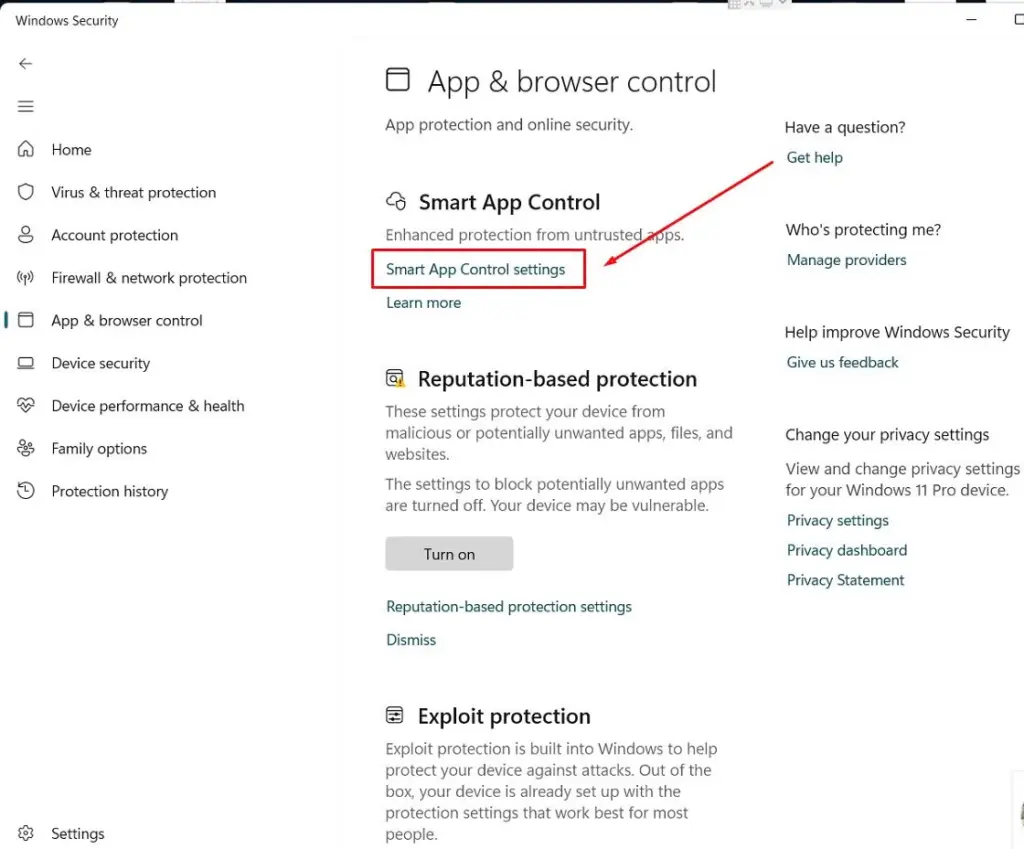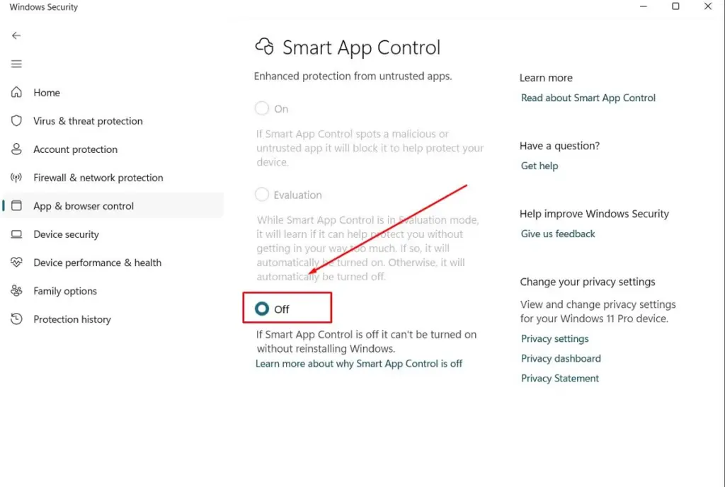 Chọn Smart App Control